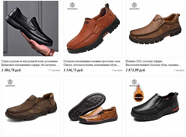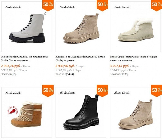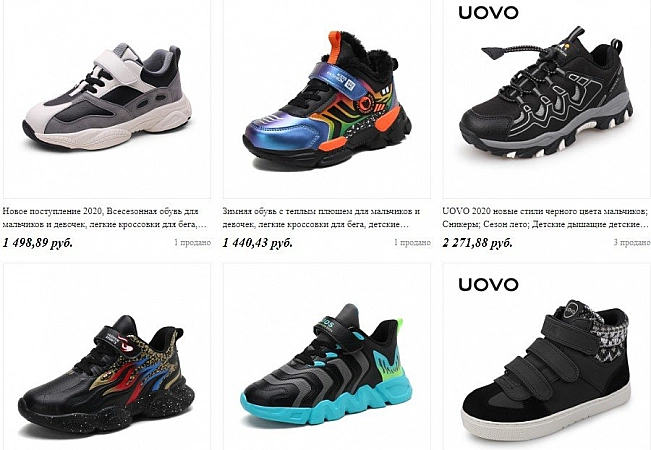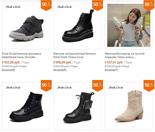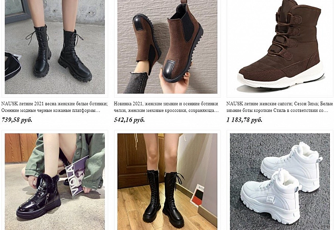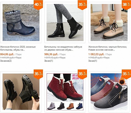 الميزة الرئيسية للمتجر هي أقل الأسعار على Aliexpress. هنا يمكنك شراء زوج واحد من الأحذية بأقل من 500 روبل.