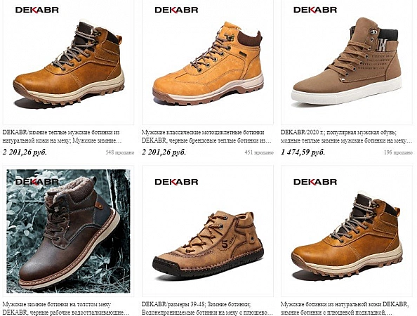 المتجر الذي يحمل الاسم الشعري DEKABR هو أحد أفضل العلامات التجارية على Aliexpress. يتم تقديم أحذية الشتاء للرجال هنا ، على الرغم من أن النساء سيحبون أيضًا بعض الموديلات ذات التصميم للجنسين. سبب شهرة المتجر هو الاهتمام بالتفاصيل والأسلوب الحديث والجودة الممتازة للخياطة. في أغلب الأحيان ، يطلب الرجال أحذية وأحذية رياضية بظلال مختلفة من اللون البني. تبدو هذه الأحذية متينة ومناسبة للمشي واجتماعات العمل. لصناعة الجلود الاصطناعية والفراء. عندما يتعلق الأمر بالسلبيات ، يذكر المشترون المادة الرقيقة ، مما يجعل من غير المحتمل أن تكون الأحذية مناسبة لدرجات حرارة أقل من -20 درجة مئوية. لكن سكان المناطق الدافئة سيكونون قادرين على المشي فيها طوال فصل الشتاء على الأقل.