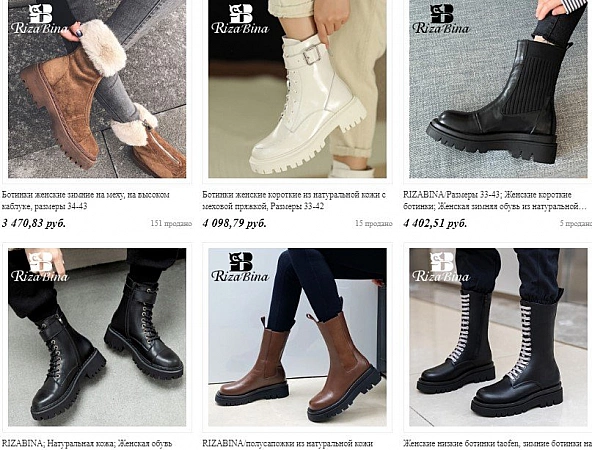 تفتخر RIZABINA بأكبر مجموعة على AliExpress. هناك أكثر من 1500 قطعة من الأحذية الشتوية ، ناهيك عن البضائع الأخرى. نطاق الأسعار كبير ، يمكنك العثور على أشياء من 10 دولارات إلى عدة آلاف روبل. لكن لا ينبغي أن تتوقع أصالة خاصة من التصميم ، فالصانع يفضل الكلاسيكيات المثبتة. تسود الأحذية النسائية بألوان الباستيل ، وهناك أحذية عالية وأحذية رياضية من الفراء. لا توجد نماذج للأطفال والرجال للبيع. كل شهر ، تصل المنتجات الجديدة إلى المتجر ، ويمكن رؤيتها في علامة تبويب منفصلة.إذا حكمنا من خلال المراجعات ، فإن الأحذية من هذا المتجر مناسبة تمامًا ، وتتوافق الأحجام. كان العيب الأكثر أهمية هو العلامات التي تظهر أحيانًا على الأحذية ذات الألوان الفاتحة.