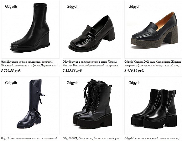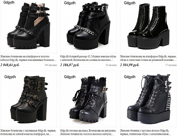 تقدم Gdgydh أحذية شتوية للمرأة الأنيقة والعصرية. تشتمل المجموعة على أحذية ضخمة وعصرية ذات سلاسل وأزرار ، وأحذية عالية المنصة برباط ونماذج أخرى مثيرة للاهتمام. الكثير من الأزواج باللون الأسود. يقترب العدد الإجمالي للعناصر من 1000 عنصر ، ولكن هناك عدد أقل بكثير من السلع الشتوية المعروضة للبيع. لسوء الحظ ، فإن أولئك الذين لا يحبون الكعب العالي والمنصات سيجدون صعوبة في العثور على شيء ما في غدغيدة. على الرغم من ذلك ، تم إدراج المتجر كأفضل علامة تجارية على AliExpress ويتلقى مراجعات إيجابية بانتظام. في نفوسهم ، تثني النساء على سرعة التسليم والتعبئة ، فضلاً عن الراحة أثناء الارتداء. التحذير الوحيد هو أن الأحذية صغيرة جدًا ، مقاس 0.5-1 تقريبًا.
