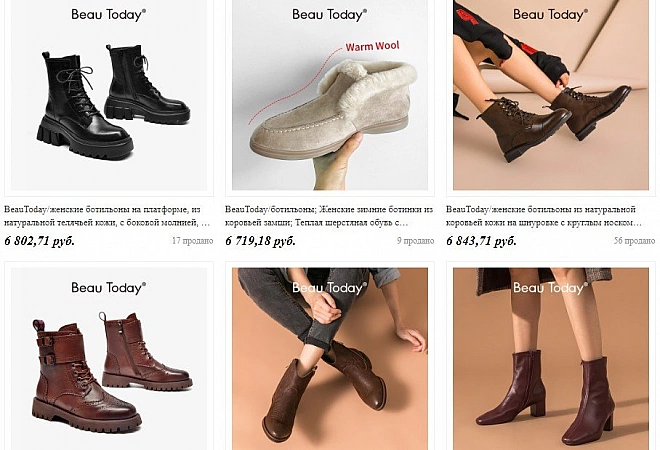 على الرغم من التجربة المتواضعة للعمل على Aliexpress ، إلا أن العلامة التجارية BeauToday موجودة منذ حوالي 35 عامًا. وهي متخصصة في إنتاج أحذية نسائية أنيقة وعالية الجودة مصنوعة من الجلد الطبيعي. تشكيلة يهيمن عليها جميع أنواع الأحذية والنعال والأحذية والأحذية ، وأحذية رياضية أقل شيوعا. للتحقق من جودة المنتجات المعروضة ، يكفي دراسة المراجعات على الموقع.يسعد العملاء بمشاركة الصور وكتابة كلمات الامتنان إلى المتجر. الأحجام دقيقة ، ولكن من الأفضل ارتداء جورب سميك. المادة كثيفة ، في درجات حرارة تصل إلى -15 درجة مئوية ستكون دافئة ومريحة. الشيء السلبي الوحيد هو وجود آثار من الغراء على بعض الأحذية.