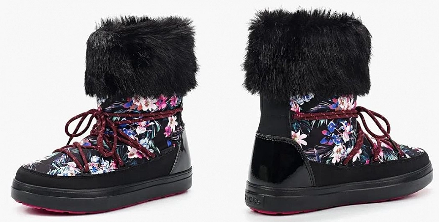Crocs produit des dutiks pour tous les goûts et tous les budgets. L'assortiment comprend des modèles en textile, en cuir et en nylon pour femmes, dont le prix commence à partir de 1500 roubles. Les produits se distinguent par des couleurs vives et des imprimés originaux. Pour l'isolation, on utilise de la fausse fourrure, qui peut également être située à l'extérieur de la botte comme élément décoratif. La plupart des modèles ont une tige courte et large et sont parfaits pour une jambe large avec une taille haute. À en juger par les critiques, les bottes sont très confortables et c'est un plaisir de marcher dedans : elles sont légères, chaudes, douces et ne pressent absolument pas.Cependant, certains se plaignent de la mauvaise conception de la semelle, qui peut faire glisser les bottes sur la glace.