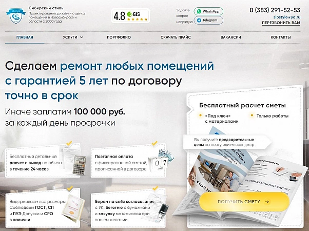 Компанията Siberian Style е една от най-точните в Новосибирск. За неспазване на сроковете договорът предвижда неустойка в размер на сто хиляди рубли.