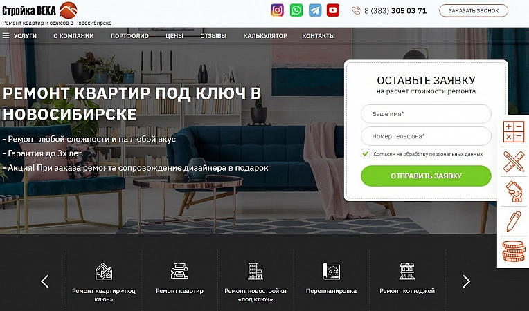 Стройка Века 54 е една от най-старите и популярни фирми с добра репутация. На пазара е от 2009 г. Работят без посредници, разполагат с добре оборудван персонал от висококвалифицирани специалисти. Гамата от услуги е много широка, от местни работи до пълномащабно довършване до ключ. Те с желание работят по дизайнерски проекти, изпълнявайки най-сложните идеи. В допълнение, специалистите са готови да предоставят услуги за технически надзор при приемане на работа от друг изпълнител. Ремонтът със силите на тази компания ще струва сравнително евтино, цените са средни в града. Фирмата дава до три години гаранция за всички видове работи. Не беше без недостатъци. Има оплаквания от немарливата работа на майсторите, правенето на едно нещо може да опетни другото. Освен това клиентите отбелязват, че оценките не винаги се разглеждат внимателно, като се правят грешки.