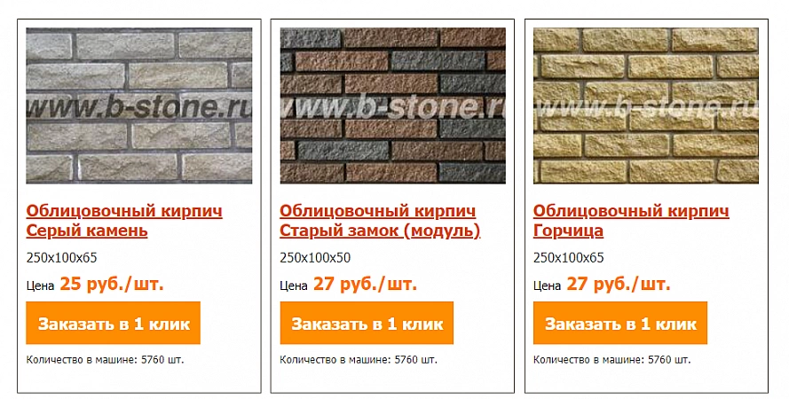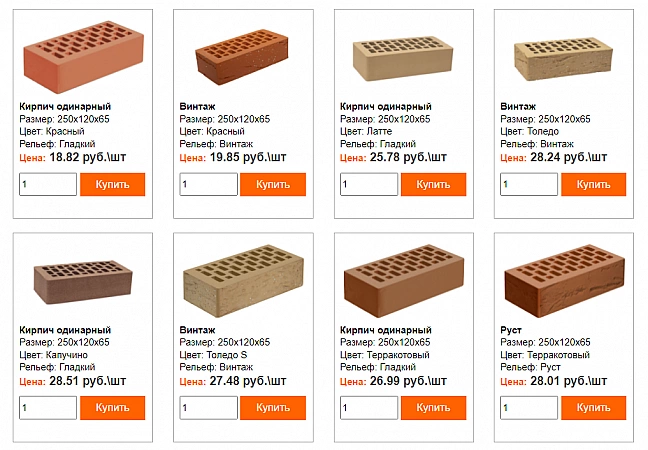 - Ποικιλία: όψη, ημι-αντίκα, κτίριο, μονόχρωμο, δίχρωμο τούβλο. μπλοκ, πλακάκια, μάρκες