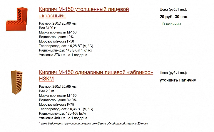 Αυτό το εργοστάσιο παράγει προϊόντα από τούβλα υψηλής ποιότητας και ανθεκτικότητας, τα οποία δικαιωματικά αναγνωρίζονται ως ένα από τα καλύτερα στην εγχώρια αγορά. Για την παραγωγή, χρησιμοποιείται ιταλικός και γερμανικός εξοπλισμός υψηλής ποιότητας, ο οποίος επιτρέπει την επίτευξη εξαιρετικών αποτελεσμάτων και την παροχή στα προϊόντα την πιο εκφραστική υφή. Η εταιρεία βρίσκεται 50 χλμ από τη Μόσχα και η παράδοση στην περιοχή πραγματοποιείται πολύ γρήγορα. Η γκάμα των συνηθισμένων τούβλων και των τούβλων δεν είναι τόσο μεγάλη όσο αυτή του εργοστασίου Golitsynsky, αλλά σίγουρα υπάρχουν πολλά για να διαλέξετε. Κρίνοντας από τις κριτικές, πολλοί αγοραστές ήταν ικανοποιημένοι με την ποιότητα των προϊόντων, αλλά αν και σπάνια, εξακολουθούν να υπάρχουν παράπονα για ελαττώματα.