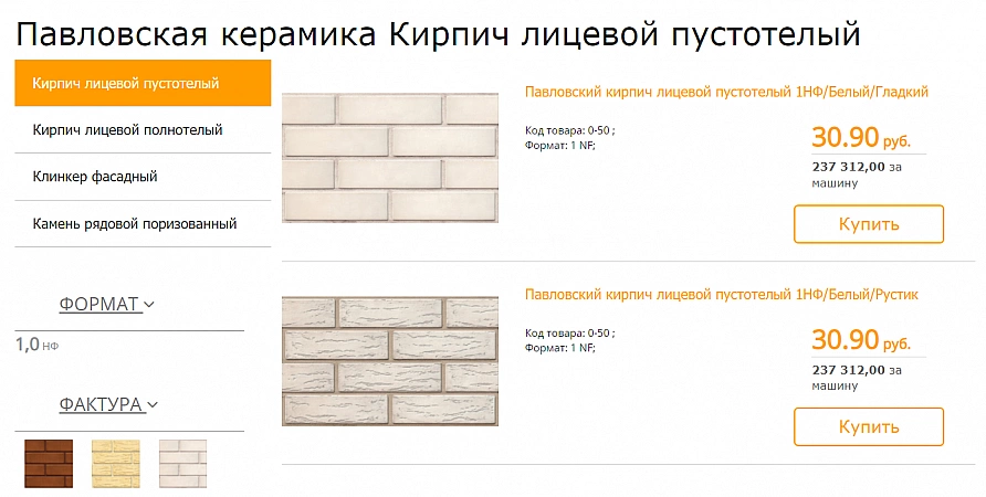 - Ποικιλία: τούβλα οικοδομής και πρόσοψης, κεραμική και πορώδης πέτρα, μπλοκ