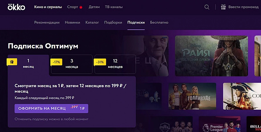 Ο παλαιότερος και ένας από τους πιο δημοφιλείς διαδικτυακούς κινηματογράφους για παρακολούθηση σειρών, ταινιών και τηλεοπτικών καναλιών. Ενσωματώνεται σε όλες τις συσκευές - από έξυπνες τηλεοράσεις έως tablet σε Android ή iOS, καθώς και σε κονσόλες παιχνιδιών. Ένας λογαριασμός επί πληρωμή έχει τις πιο ευέλικτες ρυθμίσεις - μπορείτε να εξοφλήσετε τη φθηνότερη, τυπική ή μπορείτε να συνδέσετε υπηρεσίες ροής όπως Amediateki, Viju, Paramount σε αυτόν. Υπάρχουν τιμές για παιδιά και λάτρεις του ποδοσφαίρου. Η μέγιστη τιμή συνδρομής είναι 999 ρούβλια. περιλαμβάνει όλα τα πακέτα καθώς και αθλητικά κανάλια. Σύμφωνα με τους χρήστες, αυτό είναι ένα από τα μεγαλύτερα έργα, αλλά δεν μπορεί να κάνει χωρίς μειονεκτήματα. Οι μέθοδοι απενεργοποίησης είναι δύσκολο να διευκρινιστούν, δεν καταφέρνουν όλοι να απενεργοποιήσουν πλήρως το Okko την πρώτη φορά. Ορισμένοι χρήστες αντιμετωπίζουν προβλήματα με την προβολή σε smart TV.