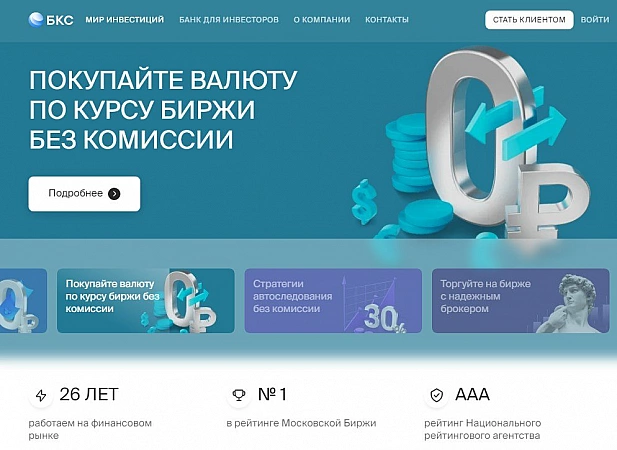 BCS Minu maakler | 1000 hõõruda. | 0,01-0,1 % | Jah | on vaba | Moskva börs, Peterburi börs, rahvusvahelised platvormid, futuuriturg |