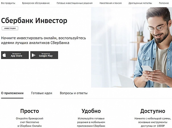 Sberbank Investori mobiilirakenduse eelmine versioon oli suunatud kogenud kasutajatele, kes kauplevad aktiivselt finantsturgudel. Täna keskendub pank algajatele mängijatele ja vähendab sisenemiskünnist. SberInvestori äpiga saab investeerimist alustada alates 1000 rublast. Kasutajatel on juurdepääs koolitusmaterjalidele koos peamiste turutööriistade ja liidese vihjetega. Portfoolio saab moodustada iseseisvalt, kuid on ka valmis ideid. Reeglina pakutakse algajatele kasutajatele kõige konservatiivsemaid, peaaegu riskivabamaid lahendusi.Arvestada tuleks ka sellega, et pank lobib siin oma huve ja pakub eelkõige kliendile oma väärtpabereid. Puudusteks on vähene teave aktsiate ja muude instrumentide kohta, nõrk analüütiline tugi, spetsialistid on saadaval ööpäevaringselt, kuid te ei saa neilt väärtuslikku nõu.