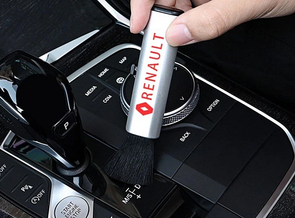 A kompakt eszköz segít eltávolítani a port a kabin legelérhetetlenebb sarkaiból. A mini sörték áthatolnak a légterelő rácson, a hangszórókon, a kartámaszon, a rádió keretén és a vezérlőpult gombjain. A termék rendkívül kompaktnak bizonyult a visszahúzható kefének köszönhetően. Összecsukott méretek - 9,2 * 3 * 2,5 cm A test alumínium ötvözetből készült, a sörték gyapjú utánzatok. A tartozékok ezüst és fekete színben kaphatók. A Renault logó matricát külön szállítjuk, manuálisan kell ragasztani. Ettől a kellemetlenségtől eltekintve, az értékelésekben nincs panasz a termékre.