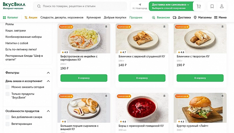 Di toko VkusVill Anda dapat memesan produk alami dan makanan siap saji berkualitas tinggi mulai dari sup hingga makanan penutup.