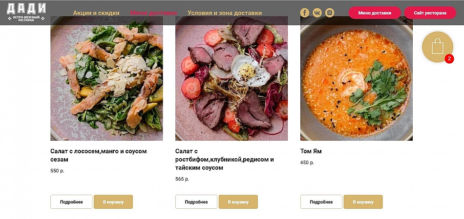"Dadi" adalah restoran untuk penikmat masakan Adyghe, Georgia, Azerbaijan, dan Uzbekistan. Jika Anda pernah mengunjungi tempat ini, Anda telah berhasil merasakan suasananya, merasakan keramahan bule dan menghargai rasa dan kualitas hidangannya. Namun, untuk merasakan kenikmatan gastronomi, tidak perlu keluar rumah, karena lembaga ini juga bekerja untuk pengiriman.Anda dapat memesan hidangan apa pun dari menu di rumah: sup, barbekyu, dan hidangan penutup. Namun, Anda harus membayar ekstra untuk layanan kurir secara terpisah - jumlahnya tergantung pada area tempat tinggal. Perlu juga dipertimbangkan bahwa pengiriman di sini tidak instan dan rata-rata memakan waktu sekitar dua jam.