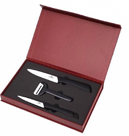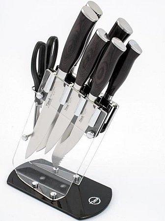 Una delle aziende russe più famose per la produzione di coltelli, piatti e altri utensili da cucina. Il marchio ha conquistato l'attenzione degli acquirenti con una vasta gamma, un buon rapporto qualità-prezzo. Le merci sono prodotte in fabbriche in Russia, Cina e persino in Italia (secondo il produttore). A catalogo puoi trovare coltelli di tutti i tipi: santoku, universali, da taglio, per pane, verdure, formaggio. Materiale della lama: acciaio inossidabile e ceramica. Per facilitare la conservazione, l'azienda offre set completi di supporto. Il marchio è economico, non produce modelli per chef professionisti. Ma per la casa i coltelli sono convenienti. Gli acquirenti nelle recensioni prestano attenzione a una buona affilatura di fabbrica. Le lame rimangono affilate a lungo, ma con una cura impropria si arrugginiscono.