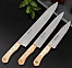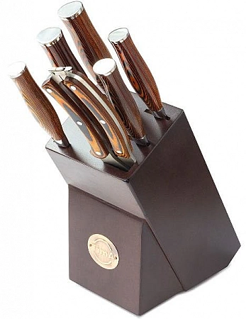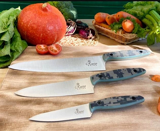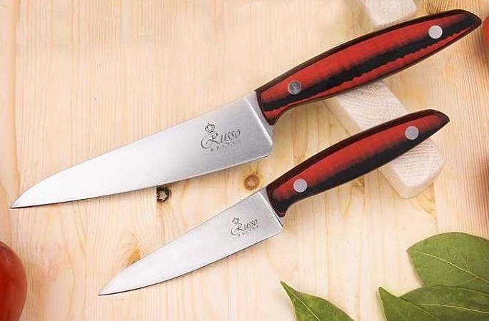 Russo Knives offre due linee di coltelli: per la casa e professionale. Non differiscono molto nel prezzo però. I coltelli sono fabbricati in Russia, sono realizzati in acciaio di alta qualità e durevole, non richiedono affilatura a lungo. Il produttore promette una garanzia a vita contro i difetti di fabbrica. Ma non ci sono recensioni su come funziona in pratica. La maggior parte dei coltelli sono massicci, solidi, ma pesanti. L'affilatura è buona, ma non perfetta. Potrebbe essere necessario modificarlo un po' prima dell'uso. A catalogo ci sono coltelli singoli e set perfetti come regalo. Tra gli svantaggi, non si possono nominare i prezzi più economici, ma sono compensati dalla qualità.