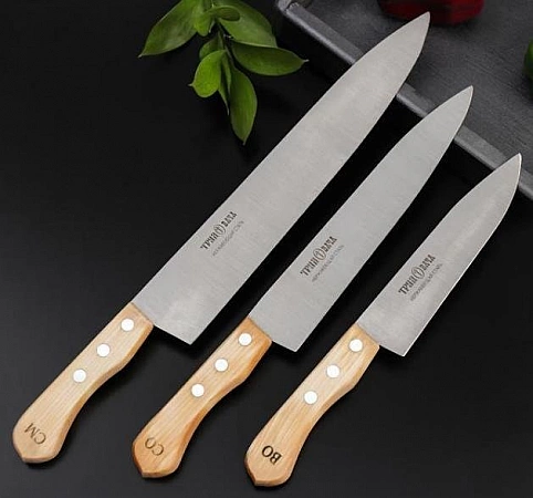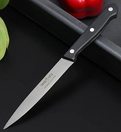 Società "Trud" della regione di Nizhny Novgorod r.p. Vacha è uno dei più antichi produttori di coltelli in Russia. Nonostante molti anni di attività, il marchio non è ancora il più famoso e diffuso. I prodotti dell'azienda sono divisi in due categorie: per uso domestico e professionale. I coltelli da cucina per la casa sono per lo più economici, ci sono opzioni economiche da 80 rubli.Questo sorprende gli acquirenti. In effetti, sono di alta qualità, nitidi e generalmente comodi da usare. L'acciaio è robusto e non necessita di affilatura frequente. La scelta dei coltelli è ampia: da chef, per pane, verdure, burro, controfiletto, tritacarne. L'unico aspetto negativo che gli utenti trovano è che è facile tagliarsi.