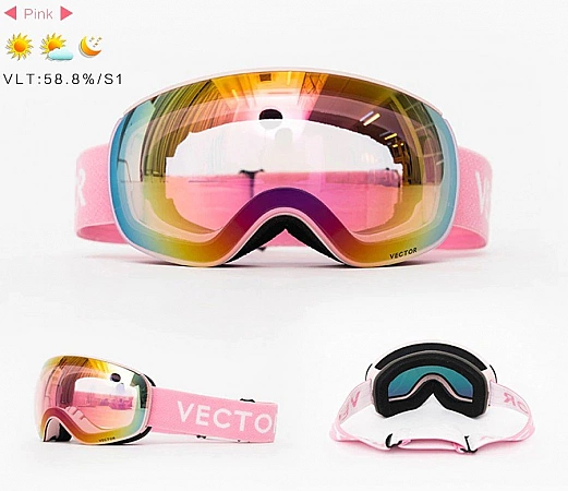 דגם VECTOR HXJ20014 יהיה המתנה הטובה ביותר לאוהבי סקי וסנובורד. זה נראה יקר יותר ממחירו בגלל גוונים יוצאי דופן וחגורה רחבה עם לוגו חברה. כמעט כל העדשות הן במראה, עם גוון רב צבעוני. בשל כך, ניתנות ניגודיות טובה ותמונה ברורה, אם כי היו כמה עיוותים קלים. זווית הצפייה היא 180°, אין כתמים עיוורים מלמעלה ולמטה.הגנה מהשמש כאן היא מקסימלית - UV400, קיים ציפוי נגד ערפל. החלק הפנימי של המסגרת מרופד בשלוש שכבות של קצף רך כדי לעצור את הרוח ולספק נוחות בזמן הרכיבה. OTG קיים, זו הסיבה לגודל משקפי הסקי.