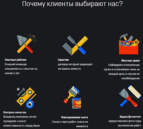 לחברת הבנייה "StroyIndustria" יש מחסן חומרים משלה שהיא מציעה ללקוחות בהנחה הגבוהה ביותר שאפשר. כתוצאה מכך, החיסכון בהם הוא עד 30%.
