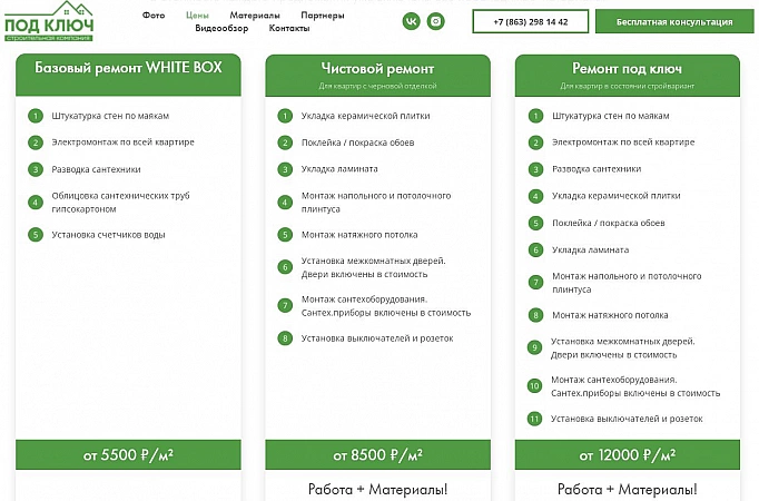 חברת PodKlyuch מצדיקה את שמה במלואה ומשתמשת בגישה משולבת בתיקונים. מה זה אומר? הלקוח מקבל לא רק צוות לביצוע עבודות בנייה ותיקון. ניתנת לו אומדן, כולל עבור חומרים מתכלים, שבזכותה הלקוח פשוט משלם את החשבון, ולאחר מכן הוא רק צריך לעקוב מדי פעם אחר התהליך. בחברת Turnkey עובדים אנשי מקצוע ברמה גבוהה, הם רק עושים עבודה איכותית, אבל גם חוסכים את הלקוח מבעיות אפשריות בעתיד, ומציעים פתרונות רציונליים יותר. באתר החברה מוצג תיק עבודות גמור. תלונות נענות מול מנהלי מכירות שמשדרים חוסר עניין בלקוח. כדאי גם לקחת בחשבון שצוות התיקונים לא תמיד מתאים לטווח הזמן המוסכם.
