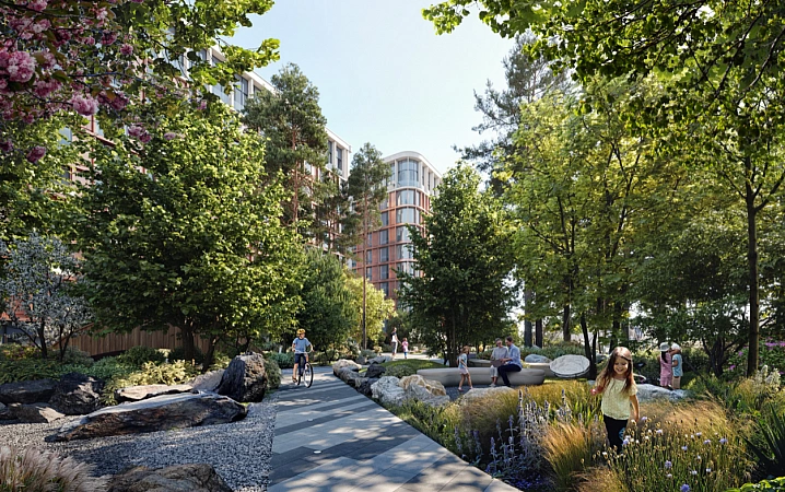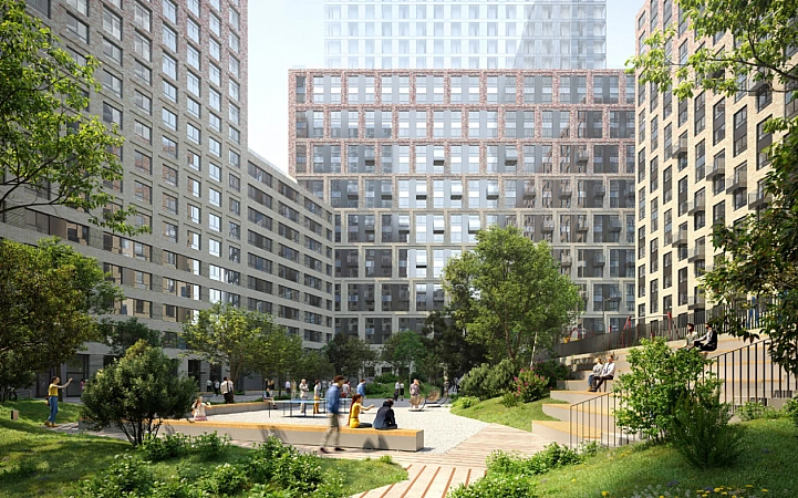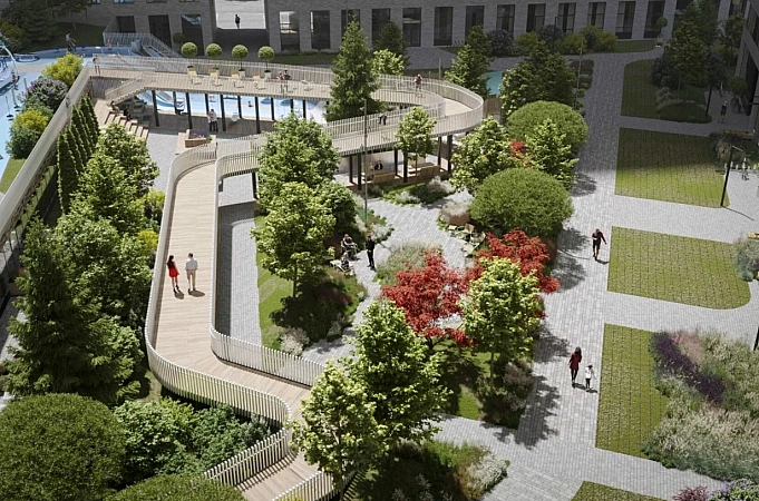Šeit viņi atkāpās no klasiskajiem projektiem un padarīja teritoriju daudzlīmeņu. Šādos apstākļos ērti būs ikvienam: gan tiem, kam patīk atpūsties klusumā, gan tiem, kas vēlas braukt ar riteni, skrituļslidām vai nodarboties ar citām aktivitātēm. Zonas dažāda veida atpūtai ir atdalītas viena no otras ar veģetāciju, alejām un tiltiņiem, lai starp iedzīvotājiem nerastos konflikti.