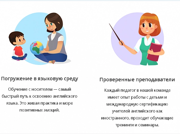 Izglītību šeit vada tikai dzimtā valoda, kas ir saistīta ar diezgan augstām cenām - no 500 rubļiem par nodarbību, kas ilgst 25 minūtes. Tas ir paredzēts maziem bērniem vecumā no 4 līdz 12 gadiem. Visas nodarbības notiek rotaļīgi – viss ir interesants un pieejams. Pateicoties šai pasniegšanas metodei, bērns labi uzsūc visu materiālu. Vissvarīgākais ir tas, ka viņi šeit ievēro pareizo taktiku - no vienkāršas līdz sarežģītai. Bērni netiek noslogoti, viņiem nav laika nogurt. Vecākiem ir daudz pieredzējušu skolotāju no dažādām valstīm. Skaidrības labad varat apmeklēt bezmaksas izmēģinājuma nodarbību.