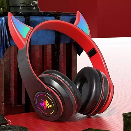 Fones de ouvido interessantes que combinam com meninas e meninos. Em vez de orelhas de gato, elas são complementadas por chifres diabólicos que brilham no escuro. Você pode conectá-los ao seu gadget via Bluetooth e ao seu computador por meio de um cabo mini-Jack. O modelo também suporta cartão de memória, que permite baixar músicas e ouvi-las sem conectar a dispositivos externos.Uma vantagem importante é a alta autonomia: segundo o fabricante, a bateria dura até 28 horas, e uma carga completa leva apenas 1,5 horas. A qualidade do som é boa, há cancelamento de ruído ativo. Além disso, os fones de ouvido são embalados em uma bela caixa. A única coisa é que o vendedor praticamente não tem comentários especificamente para este modelo.