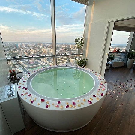 O Eco Spa está localizado no 53º andar do banco de dados Vysotsky. Fica a 186 metros acima do nível da cidade, com vistas panorâmicas deslumbrantes de Yekaterinburg e o melhor cenário para fotos espetaculares.