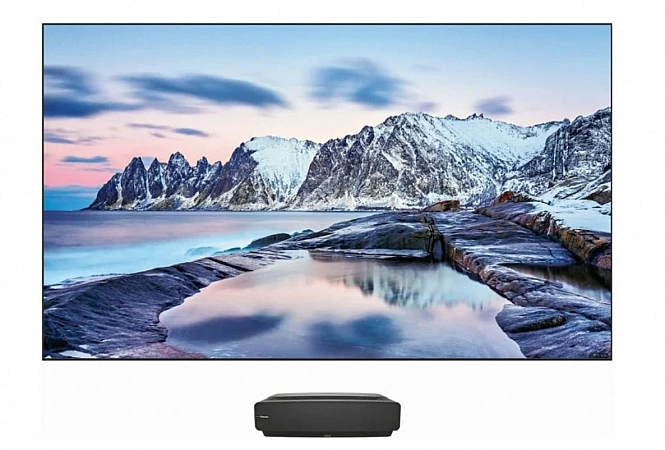 TV com a maior tela - sua diagonal chega a centenas de polegadas. Mas este modelo difere não apenas no tamanho enorme da tela.Enquanto o fabricante japonês produz grandes TVs literalmente pelo preço de um apartamento, os chineses fabricam produtos relativamente baratos de tamanho semelhante. Hisense 100L5F não é, de fato, uma TV tradicional, mas um conjunto de projetor, tela e acústica. E esse sistema merece ser chamado de home theater completo. A imagem é brilhante e clara. O projetor não precisa ser colocado longe da tela - a distância mínima é de apenas 19 cm. A Smart TV não funciona com um sistema operacional pouco conhecido na Rússia, mas sua funcionalidade agrada.