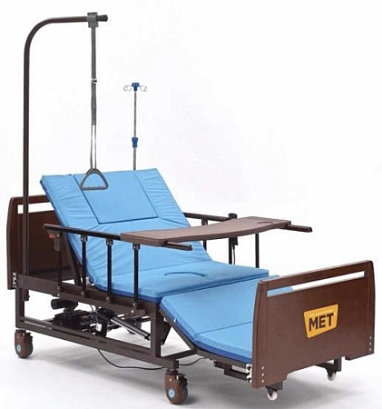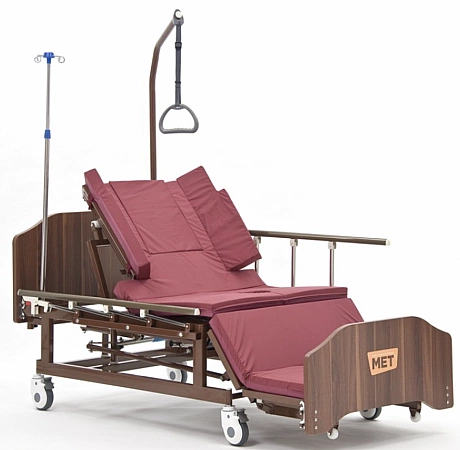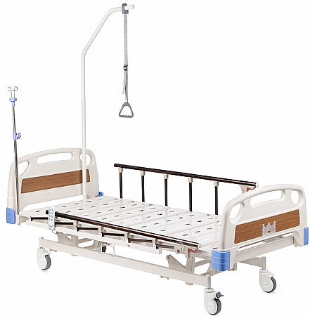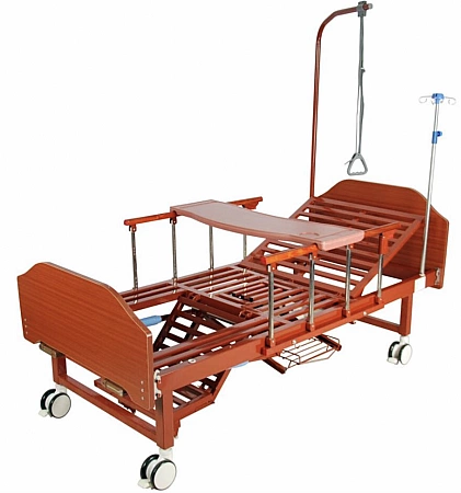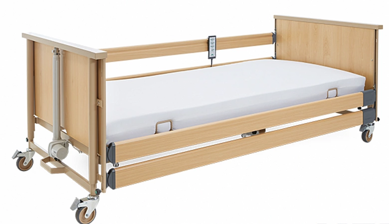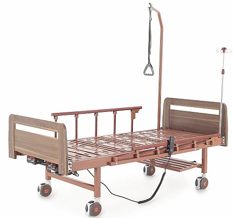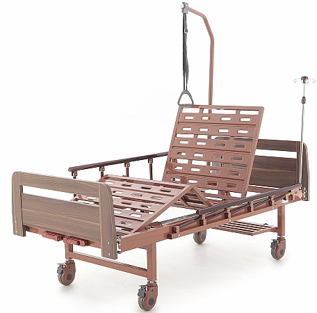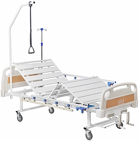 Uma versão popular da cama médica é projetada para ficar em casa de pacientes acamados. A base forte pode suportar cargas pesadas e a função de elevação das costas e do quadril aumenta a manobrabilidade do paciente e facilita os cuidados de higiene. Você pode controlar o ângulo de inclinação com a ajuda de alças confortáveis. Painéis plásticos na cabeça e nos pés são fáceis de limpar, se necessário, são removidos para acessar o corpo do paciente. As proteções laterais e as rodas são responsáveis pela segurança, que são fixadas em uma posição pré-determinada com um simples empurrão.