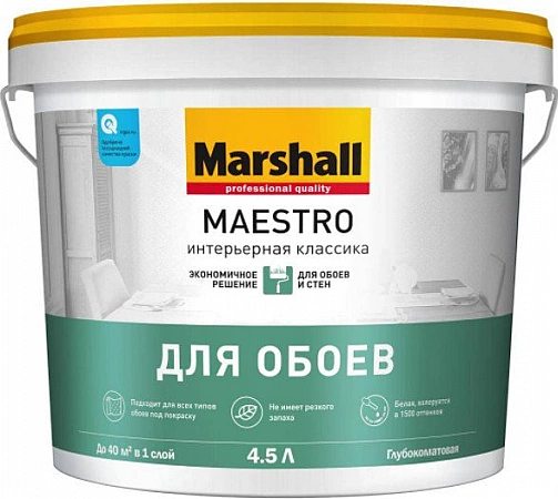Producător european, subsidiară a AkzoNobel Corporation din Olanda. Produce vopsele profesionale și le vinde la prețuri foarte accesibile. Pentru tapet din sticlă, nețesute și vinil, marca a dezvoltat linia Maestro Interior Classics.Baza acestui material este latexul acrilic, dar nu există compuși periculoși pentru oameni în compoziție. De asemenea, LKM practic nu are miros. Acoperirea se usucă rapid, vopseaua se aplică fără mare dificultate. Pe lângă Maestro, marca are încă 3 tipuri de materiale compatibile cu tapetul: Export-2, Export Bucătărie și Băi, Export-7. Singurul lucru pe care utilizatorii nu le place la acoperirile Marshall este nivelul scăzut de putere de ascundere. Vopseaua pe o suprafață cu o textură complexă și culoare închisă trebuie aplicată în mai multe straturi.