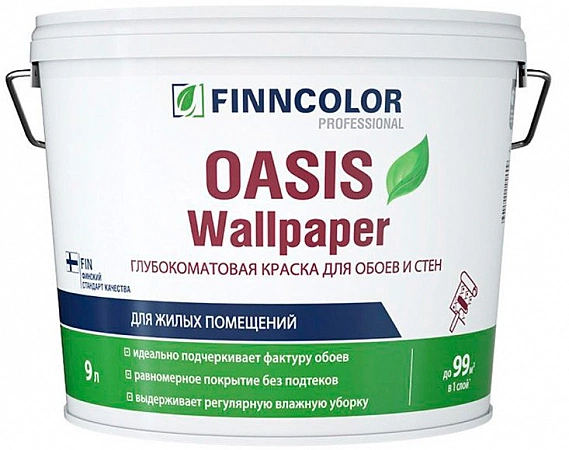 Producătorul este filiala rusă a mărcii finlandeze Tikkurila. Gama include acoperiri pe bază de acrilic, rezistente la umiditate, lavabile. În special pentru toate tipurile de tapet, marca lansează linia Oasis Wallpaper. Materialul subliniază textura bazei, este ușor de distribuit. De asemenea, în gama FINNCOLOR există o vopsea universală Oasis Kitchen&Gallery. Dar este mai potrivit pentru vopsirea sticlei. Timp de uscare a straturilor: până la 4 săptămâni. După acest timp, acoperirea devine durabilă și rezistentă la curățarea umedă. Judecând după recenzii, nu există probleme speciale cu utilizarea vopselelor, dar totuși unii se plâng de instabilitatea materialelor de vopsea față de umiditate. Problemele legate de spălarea stratului de acoperire sunt cel mai adesea asociate cu îngrijirea necorespunzătoare a suprafeței tratate și cu nerespectarea tehnologiei de uscare.