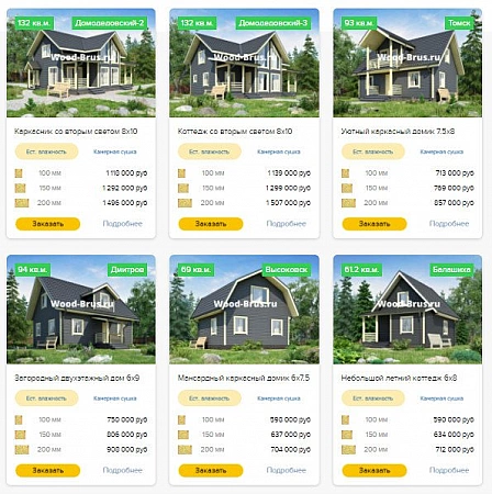 Spoločnosť s veľkým regionálnym pokrytím. Stavia domy na kľúč pomocou rámovej technológie nielen v Moskve a Moskovskom regióne, ale aj v celej európskej časti krajiny. Tím spoločnosti používa ako surovinu na rezivo drevo z regiónu Vologda a drevo sa ťaží bez sprostredkovateľov. Kvalitou výstavby a spoľahlivosťou obytných budov môže WOOD-BRUS konkurovať známym značkám. Je pravda, že tento dodávateľ nie je bez nedostatkov. Náklady na objekt na webe sa môžu v skutočnosti zvýšiť o 200 - 500 tisíc rubľov. spolu s doplnkovými službami, bez ktorých sa nezaobídete. Preto, aby ste neboli sklamaní z konečného odhadu, musíte sa pred kontaktovaním spoločnosti poradiť s manažérom.