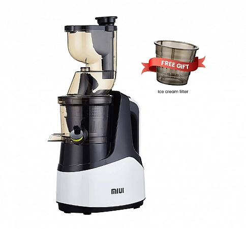 Polžasti sokovnik z Aliexpressom iz hčerinske družbe Xiaomi. Kot darilo dobite filter za sladoled. Model ima široko funkcionalnost: odvisno od nastavitve lahko dobite čisti sok ali pustite pulpo, obstaja možnost samodejnega izmeta pogače. Proizvajalec je uporabil patentirano tehnologijo Slow Squeezing, zahvaljujoč kateri se vitamini in druge koristne snovi v sokovih in smutijih čim bolj ohranijo. Poleg tega je sokovnik MIUI 2020 Pro opremljen z dvojnim filtrom za povečanje čistosti soka, vendar sodeč po ocenah med predelavo jabolk še vedno ostane veliko pulpe. Če želite dobiti suho torto, morate uporabiti trdo sadje.
