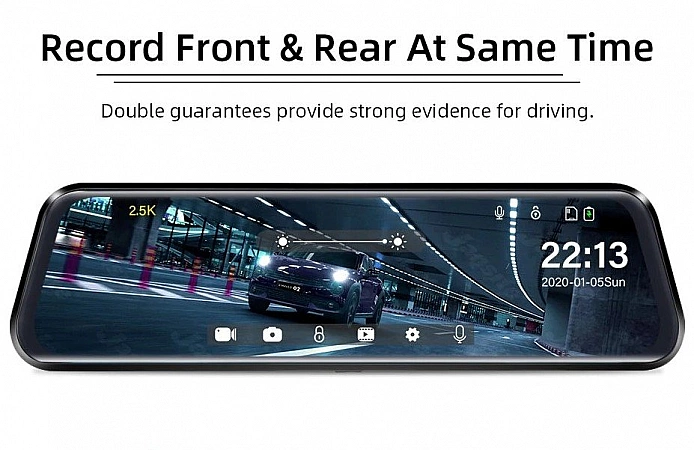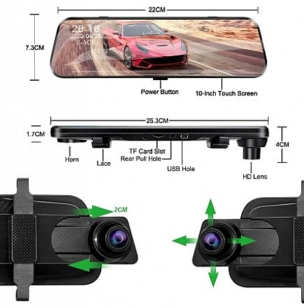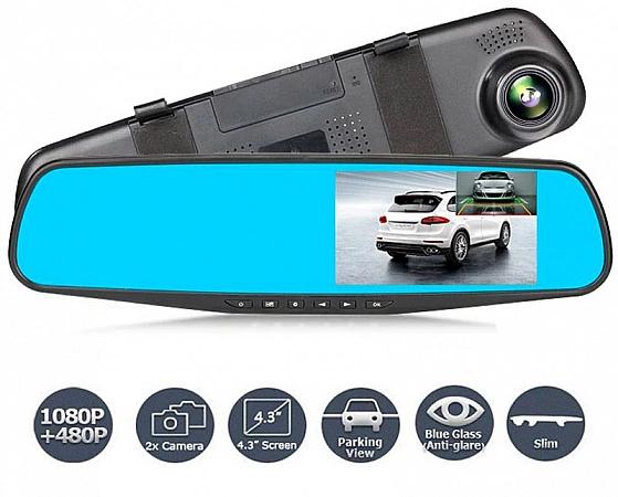 Када купујете буџетски ДВР у свом аутомобилу, у почетку не очекујете много од њега. По правилу, ово нису веома функционални уређаји са ниском резолуцијом и једноставном камером. Али не у овом случају. Пред нама је најопремљенији гаџет, чија је цена заиста шокантна, јер може да ради са две камере.Приказује слику у слици, повезује се са паркинг сензорима независних произвођача и снима у резолуцији 1080П. Угао гледања од 170⁰ такође ће задовољити, али само на предњој камери. Задња страна има само 120 степени, али ово је сасвим довољно да се види све што се дешава. Ту су и сензор покрета, ноћни режим и Г-сензор.