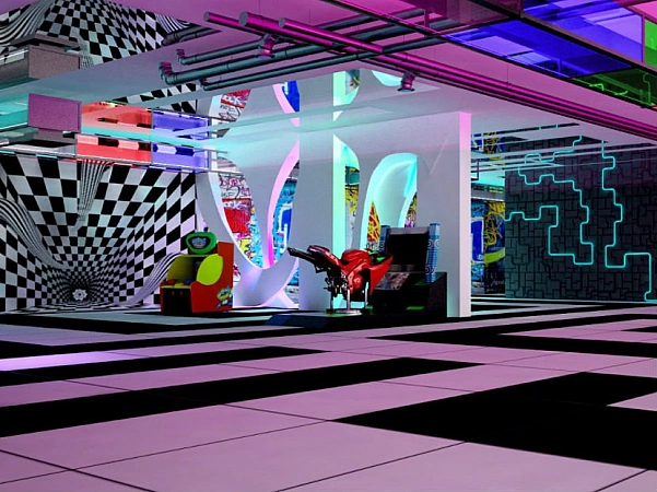 - Barnunderhållning: virtuell verklighetshall, labyrintstad