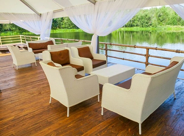 All inclusive-hotellet i Moskva-regionen erbjuder sina gäster omfattande rekreationsmöjligheter. Varje gäst här kommer att hitta något som de gillar. En mängd olika underhållning kommer att glädja par med barn. På hotellets territorium finns en bondgård, som är en liten djurpark, en studsmatta, ett bra barnrum, animatörer arbetar hela dagen. Vuxna kan rida på hästar, fiska, spela biljard eller tennis, steka grill. Det finns paintball, laser tag, en skjutbana, en skridskobana och ett gym. Måltider är tre gånger om dagen, organiserade enligt buffésystemet. Rätterna är varierade och utsökta. Besökare är frustrerade bara över att inte den senaste renoveringen i rummen och den lilla storleken på inomhuspoolen.