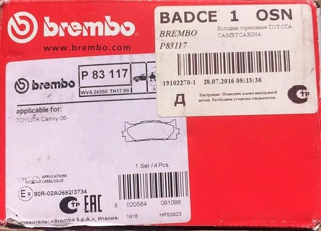 Brembo P83117 ออกแบบมาเพื่อเปลี่ยนผ้าเบรกสต็อกบนเพลาหน้าของ Toyota Camry V 50 หรือ V 40 แสดงให้เห็นถึงค่าสัมประสิทธิ์แรงเสียดทานที่ดีที่สุดภายใต้สภาวะทั้งหมด ด้วยประสิทธิภาพการเบรกที่ดีที่สุด รวมถึงการเบรกฉุกเฉิน ผ้าเบรกเป็นที่ต้องการของแฟน ๆ ที่มีสไตล์การขับขี่แบบไดนามิกและสปอร์ต คุณลักษณะขององค์ประกอบแรงเสียดทานของผ้าเบรกเหล่านี้คือความต้านทานสูงสุดต่อความร้อนสูงเกินไป เพื่อไม่ให้สูญเสียประสิทธิภาพระหว่างการใช้งานอย่างเข้มข้น ข้อเสียเปรียบเพียงอย่างเดียวตามที่ผู้ใช้ระบุว่าไม่ใช่ทัศนคติที่ระมัดระวังที่สุดสำหรับแผ่นดิสก์ดั้งเดิม แต่สามารถแก้ไขได้ง่ายโดยการติดตั้งส่วนนี้จาก Brembo