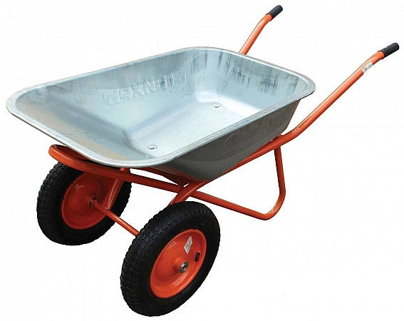 รถสาลี่สองล้อที่เจียมเนื้อเจียมตัวมากของผู้ผลิตรัสเซีย แต่ก็ยังดึงดูดชาวสวนและผู้สร้างจำนวนมากด้วยราคาที่ไม่แพง โครงโลหะที่ทำจากท่อติดตั้งอยู่บนล้อลมที่มีขนาดเส้นผ่านศูนย์กลาง 36 ซม. ซึ่งให้ความเสถียรและความคล่องแคล่วที่ดีของรถเข็น ปริมาณของรางเหล็กมีขนาดเล็ก - เพียง 65 ลิตร - แต่เพียงพอสำหรับการขนส่งปุ๋ย ดิน วัสดุก่อสร้างจำนวนมาก และไม่ใช่เฉพาะวัสดุเท่านั้น ในแง่ของความสามารถในการบรรทุกทุกอย่างก็เจียมเนื้อเจียมตัว - 100 กก. ดังนั้นจึงแนะนำให้ซื้อรถสาลี่สำหรับเจ้าของพื้นที่ขนาดเล็กเพื่อไม่ให้ต้องพลิกคว่ำหลายครั้ง ที่จับทั้งสองข้างมีที่จับสีดำที่ปลายด้ามจับที่สะดวกสบาย ตัวรถทำจากเหล็กเคลือบสังกะสี เพื่อให้รถสาลี่มีความทนทานและไม่เป็นสนิมตลอดอายุการใช้งาน
