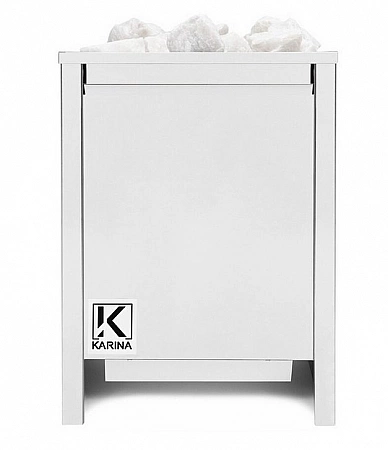 Küçük bir banyonuz varsa ve bir servet harcamadan onu saunaya dönüştürmek istiyorsanız Karina'nın elektrikli sobası en iyi çözüm. Sadece 3 metreküplük bir hacim için tasarlanmış bir Rus üreticinin maksimum bütçe modeli. Güç tüketimi uygundur. Maksimum yükte, fırın saatte 2,5 kilovattan fazla tüketmez. Ancak programlanabilir modlar ve hoş eklemeler yok. Buhar jeneratörü yerleşik değildi ve yalnızca sıcaklık rejimini ayarlayabilirsiniz. Ancak taşların üzerine su sıçratabilirsiniz. Isıtma elemanları, taşların derinliklerine gizlenmiş ve nem ile teması mümkün olduğunca kaçınacak şekilde yerleştirilmiştir.
