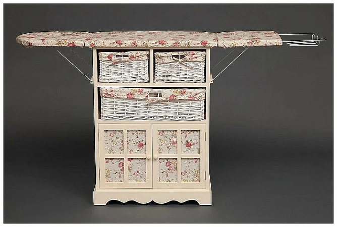 Một kiểu trang trí tiện dụng của phong cách Provence sẽ là tủ ngăn kéo để ủi đồ. Đây là một không gian làm việc toàn bộ với nơi cất giữ bàn là và đồ vải. Nhà sản xuất có một số tùy chọn cho tủ có ngăn kéo với giỏ, ngăn kéo và cánh tủ nhỏ - bạn có thể chọn loại nào thuận tiện hơn cho mình.Nhưng tất cả chúng đều được thống nhất bởi một thiết kế thú vị và dễ sử dụng. Việc tháo rời bảng rất dễ dàng. Bề mặt của tủ đầm là một phần của không gian làm việc, bạn chỉ cần nhấc các phần tử còn lại ở bên trái và bên phải. Nó chỉ ra một bề mặt ủi có kích thước thuận tiện và giá đỡ bàn ủi. Người mua thích thiết kế và chức năng của nhà sản xuất, tuy nhiên, một số người tin rằng nó khá mỏng manh.