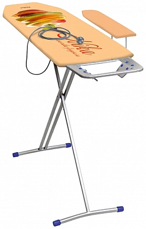 Một bảng ngân sách đơn giản với mặt trên bằng ván ép và một ổ cắm gắn sẵn. Nó không được thiết kế để hoạt động với máy tạo hơi nước, nhưng nó chăm sóc bàn ủi - miếng đệm silicone trên chân đế bảo vệ đế khỏi trầy xước. Giá để tay áo được cố định vào mặt bàn chính, nhưng nó có thể được tháo ra nếu cảm thấy bất tiện. Bảng có 2 vị trí chiều cao - 70 và 85 cm Thiết kế của bảng không thiết kế chịu tải trọng lớn - tối đa cho phép là 15 kg. Nhưng bản thân bảng khá nhẹ - chỉ 6,2 kg. Một số người mua phàn nàn rằng ban đầu bo mạch bị chao đảo và giải quyết vấn đề này bằng cách quấn băng dính điện trên tấm chống trượt. Bìa bông của nhà sản xuất được bày bán rất nhiều loại, tuy nhiên, tại các cửa hàng trực tuyến, không phải lúc nào bạn cũng có thể chọn được mẫu.
