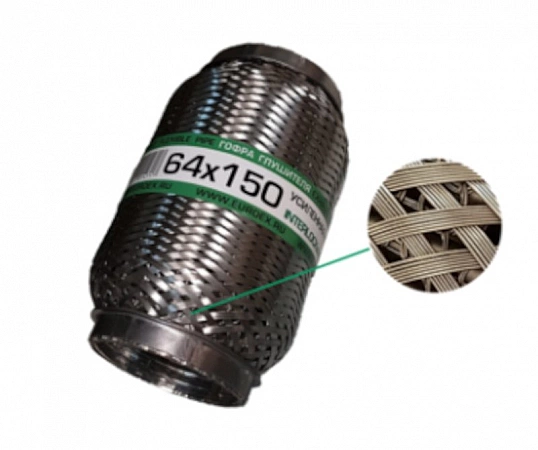 聯鎖 - 一個柔性金屬套筒,其內部由鋼板組成。這種消音器波紋更靈活,資源更長,但它們並不便宜。通常這是在工廠安裝的設計。